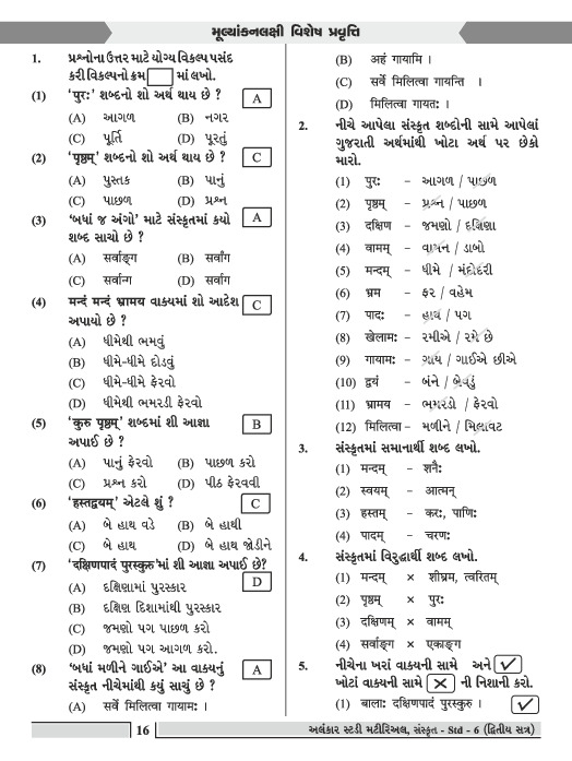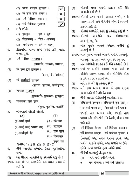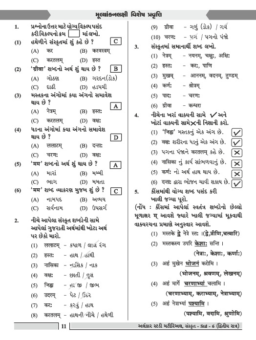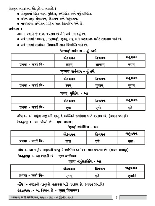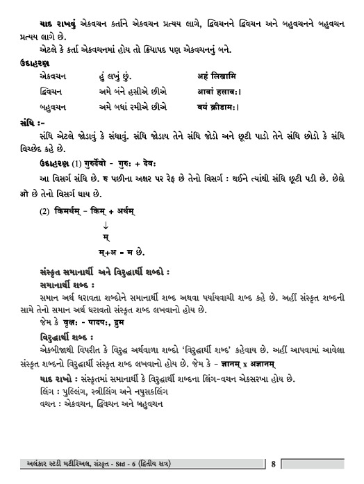 STUDY MATIRIAL AND GRAMMAR-SANSKRIT SEMESTER-2 | STANDARD-6